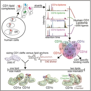Antigen-presenting molecules bind peptide, lipid, or metabolite ligands to interact with T cell receptor (TCR) and activate different T cell populations. Antigen-presenting molecules, including MR1 and CD1, bind metabolite and lipid ligands to interact with MAIT cells and CD1-restricted T cells, respectively. To identify the metabolites and lipids for T cell activation, we expressed and isolated non-peptidic ligands from MR1 and CD1 proteins to characterize their structures and functions for T cell activation. Taking the CD1 system as an example, human CD1a, CD1b, CD1c, and CD1d proteins bind lipid antigens for surface display to T cells. We solved lipidomes interacting with these four human CD1 proteins and provided a map of self-lipid display via detecting >2,000 CD1-lipid complexes and demonstrating a broad presentation of self-sphingolipids and phospholipids. These data allowed further size-matching of lipids with CD1 lipid-binding clefts and provided candidate lipid blockers and agonists for T cells.
